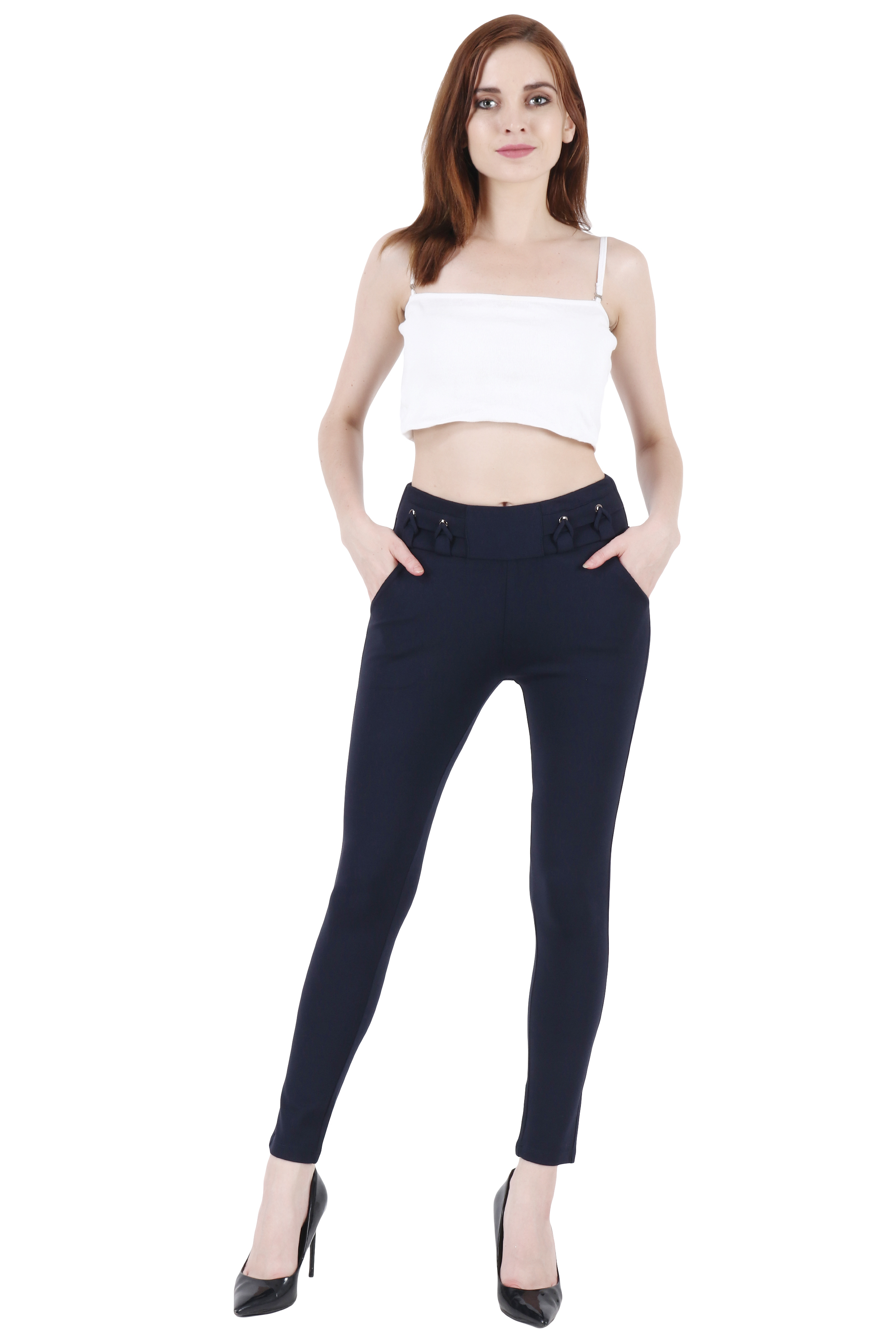 Navy Blue Stylish and well-fitted Jegging with, Breathable and Premium smooth fabric for all-day comfort, has an elasticated waistband for extra comfort and two front pockets, All styling accessories ( elastic, zipper, and buttons) used on the garment are of the best quality.
