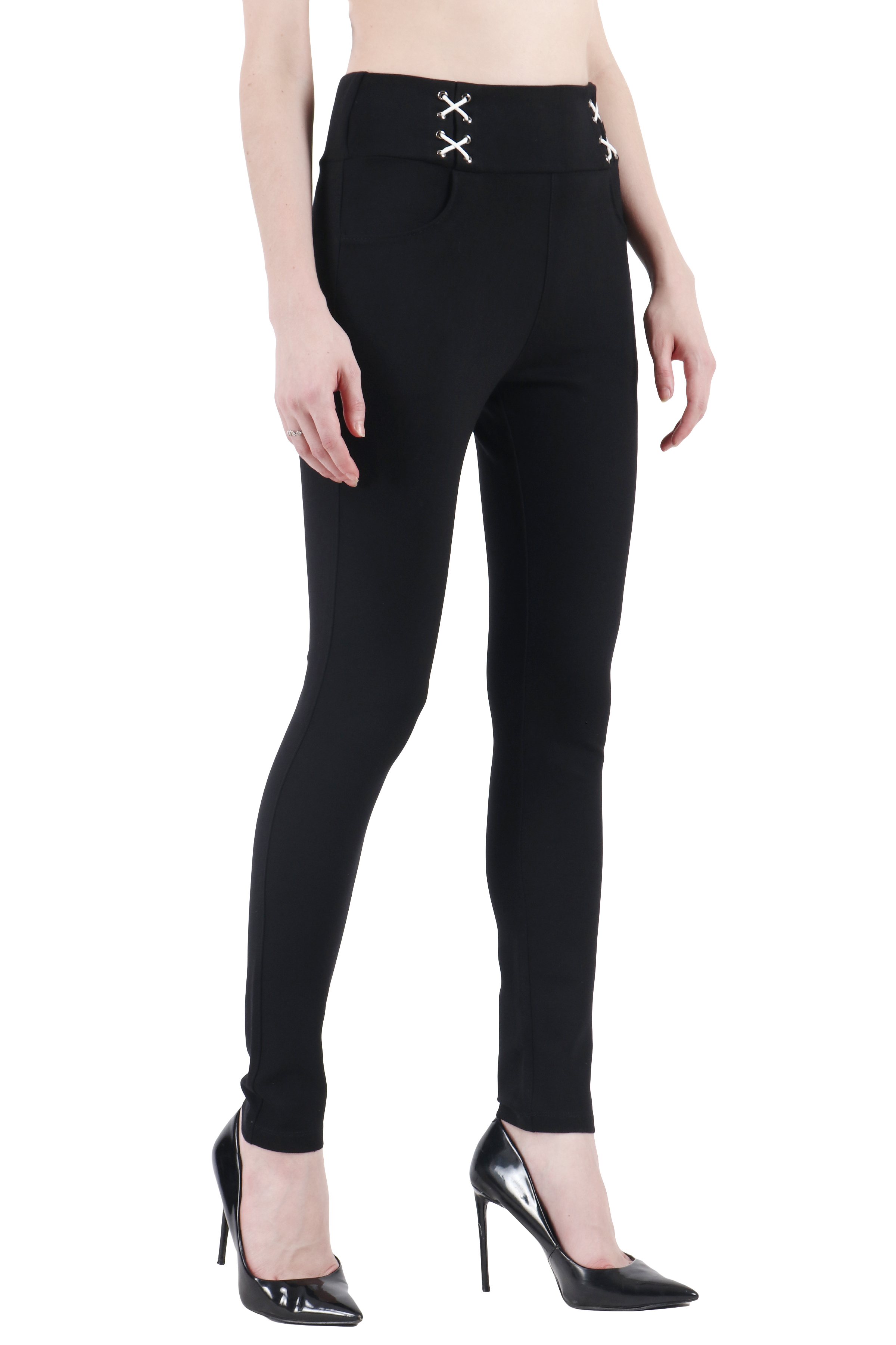 Black Stylish and well fitted Jegging, Breathable and Premium smooth fabric for all-day comfort, has a Broad elasticated waistband for extra comfort and two front pockets, All styling accessories ( elastic, zipper, and buttons) used on the garment are of the best quality.