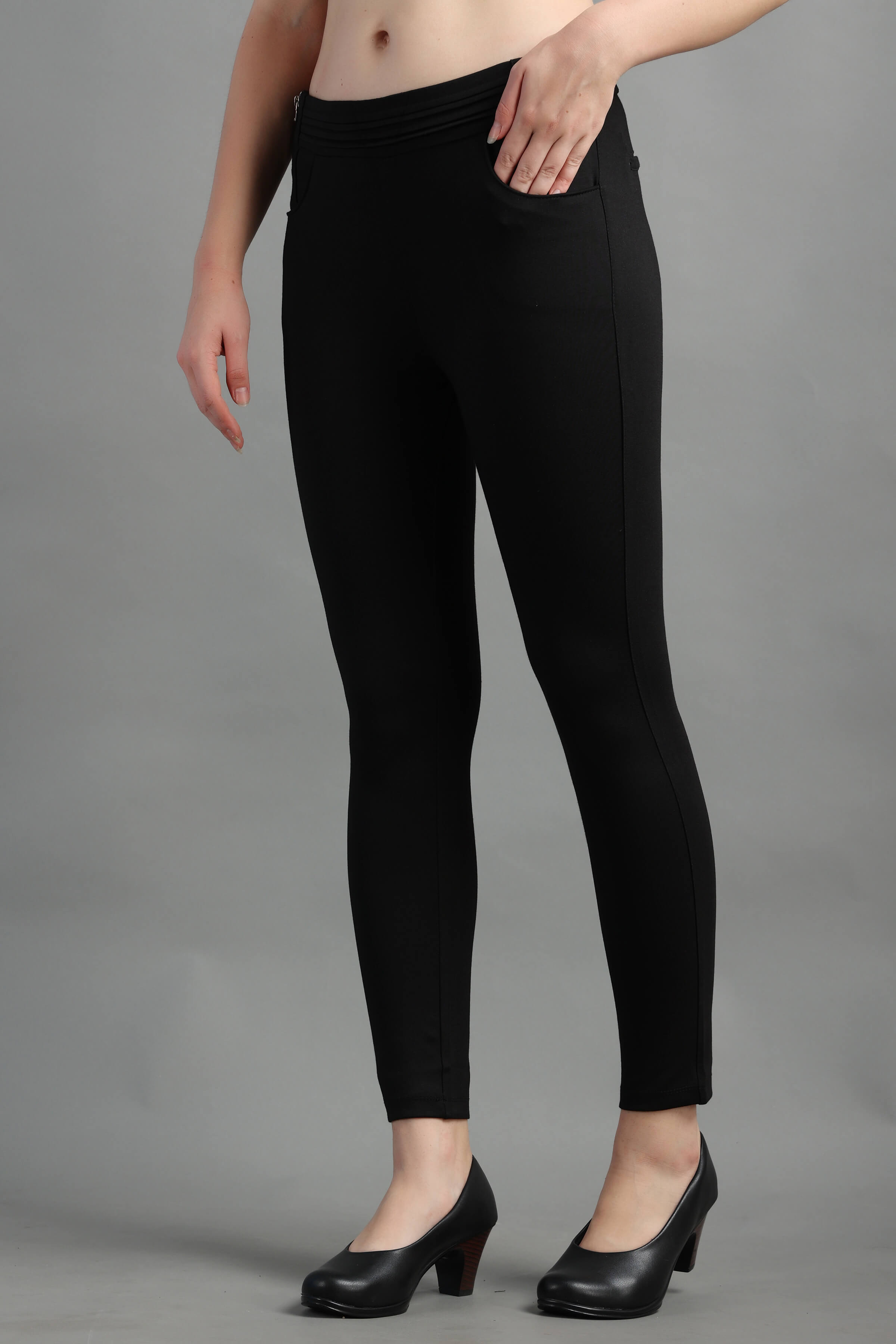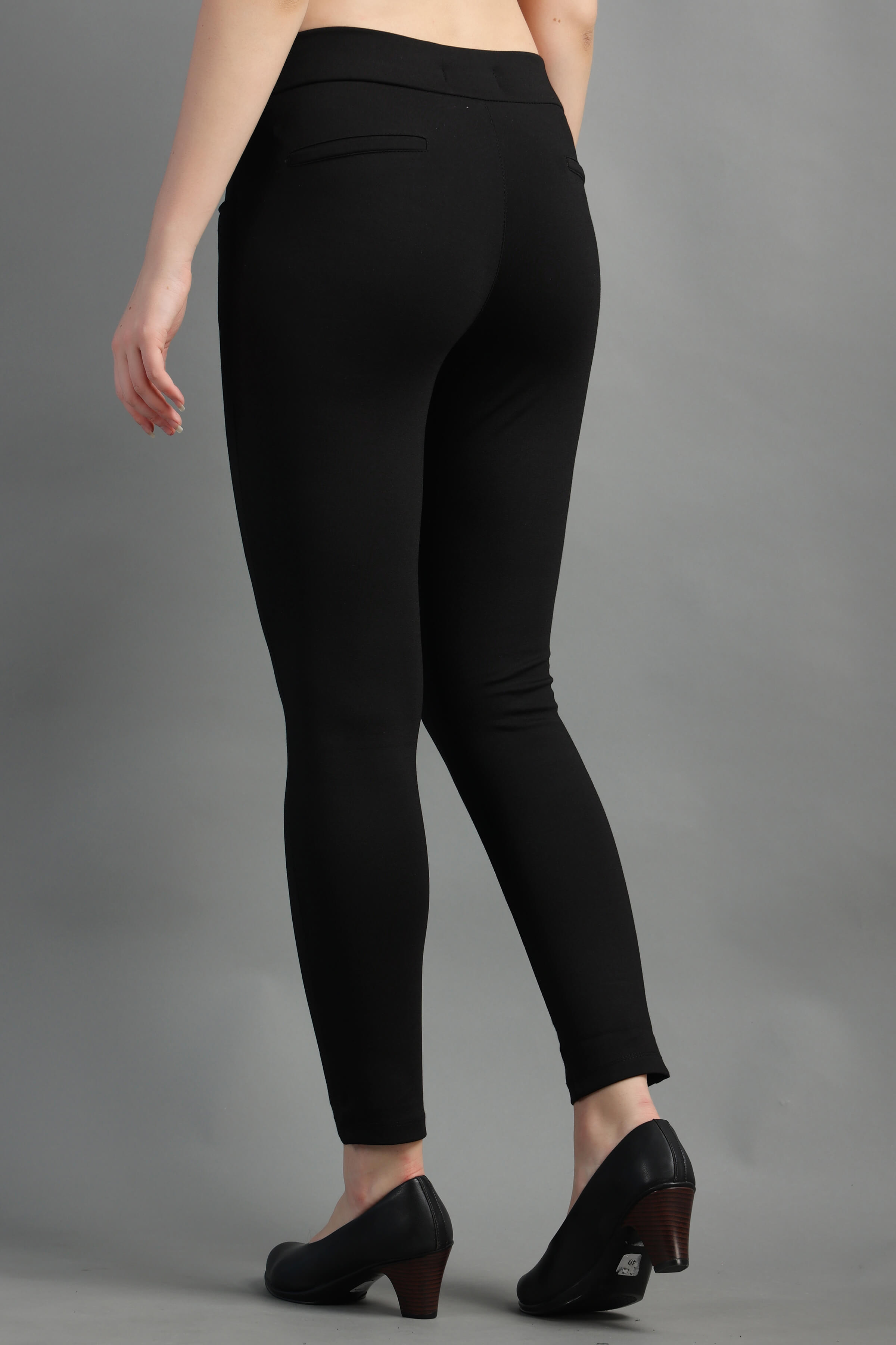 Black Stylish and well fitted Jegging with Zip Detail, Breathable and Premium smooth fabric for all-day comfort, has an elasticated waistband for extra comfort and two front pockets, All styling accessories (elastic, zipper and buttons) used on the garment are of the Best Quality.
