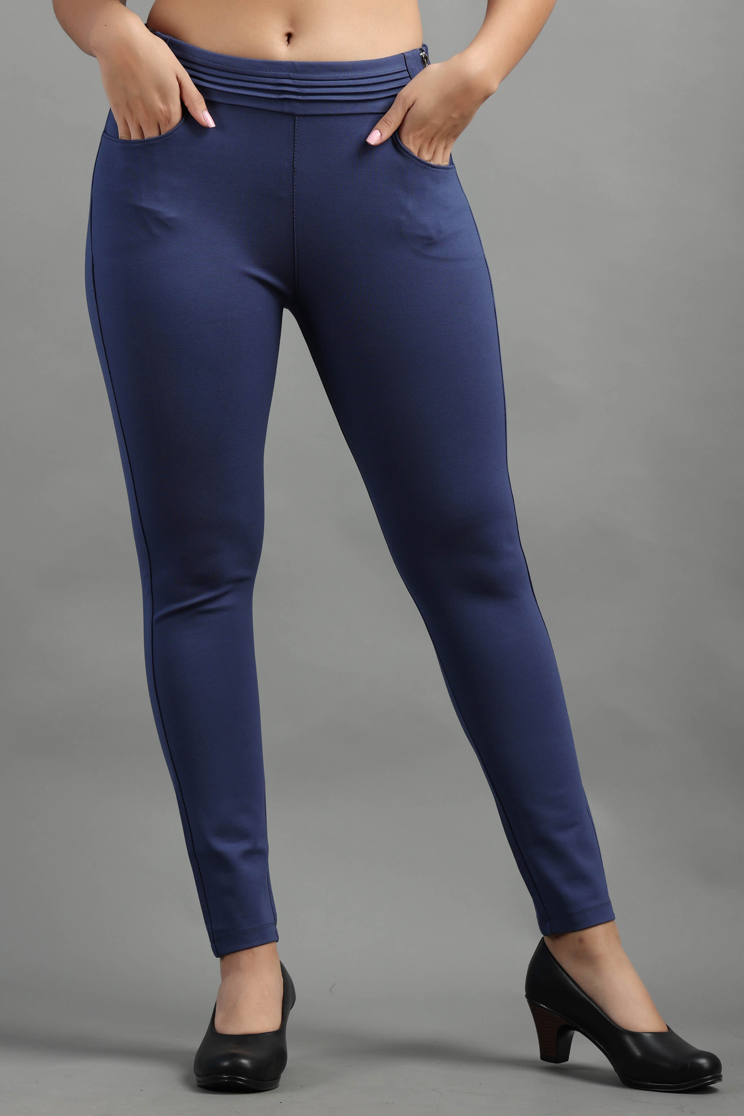 Denim Stylish and well fitted Jegging with Zip Detail, Breathable and Premium smooth fabric for all-day comfort, has an elasticated waistband for extra comfort and two front pockets, All styling accessories (elastic, zipper and buttons) used on the garment are of the Best Quality.