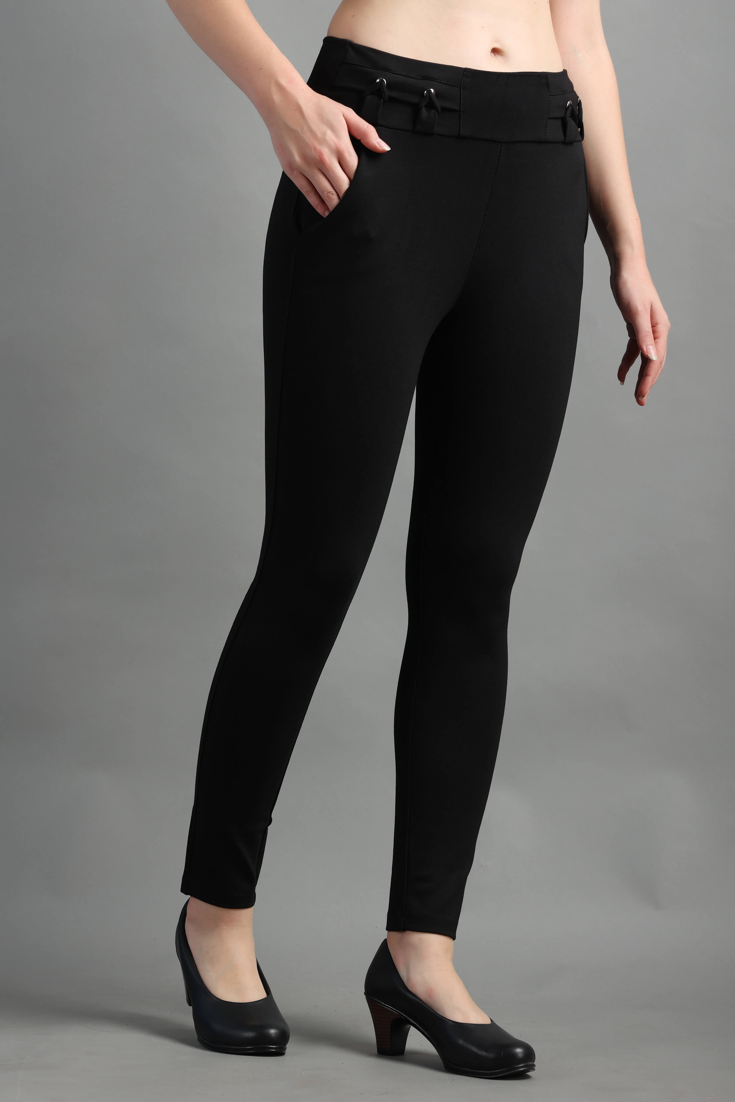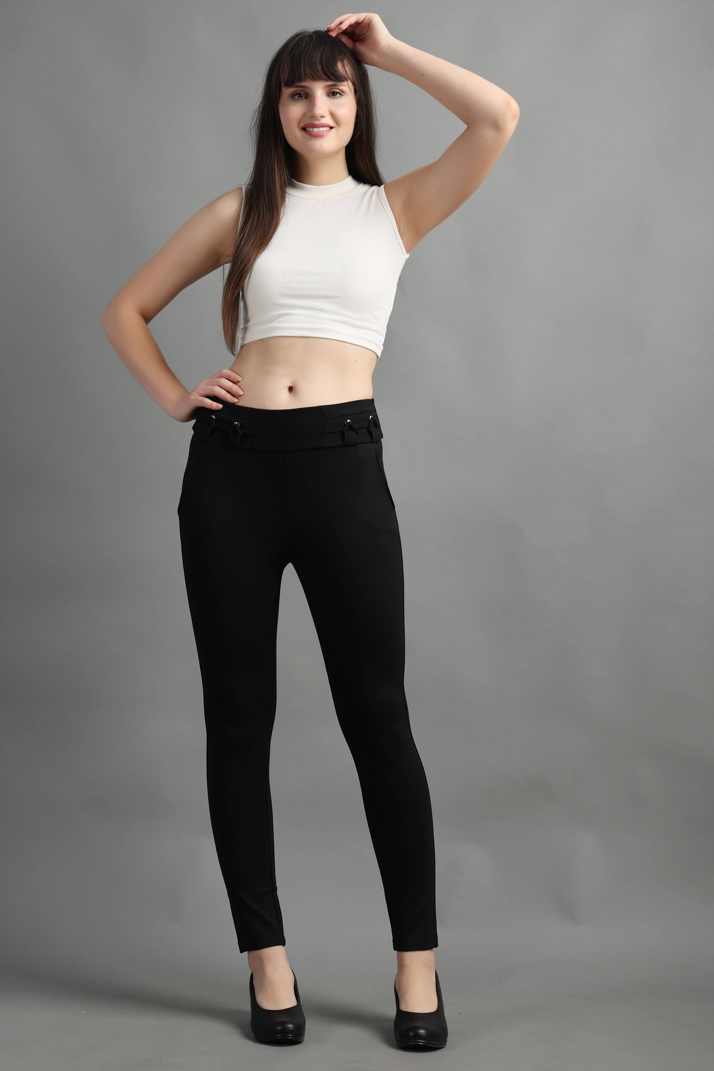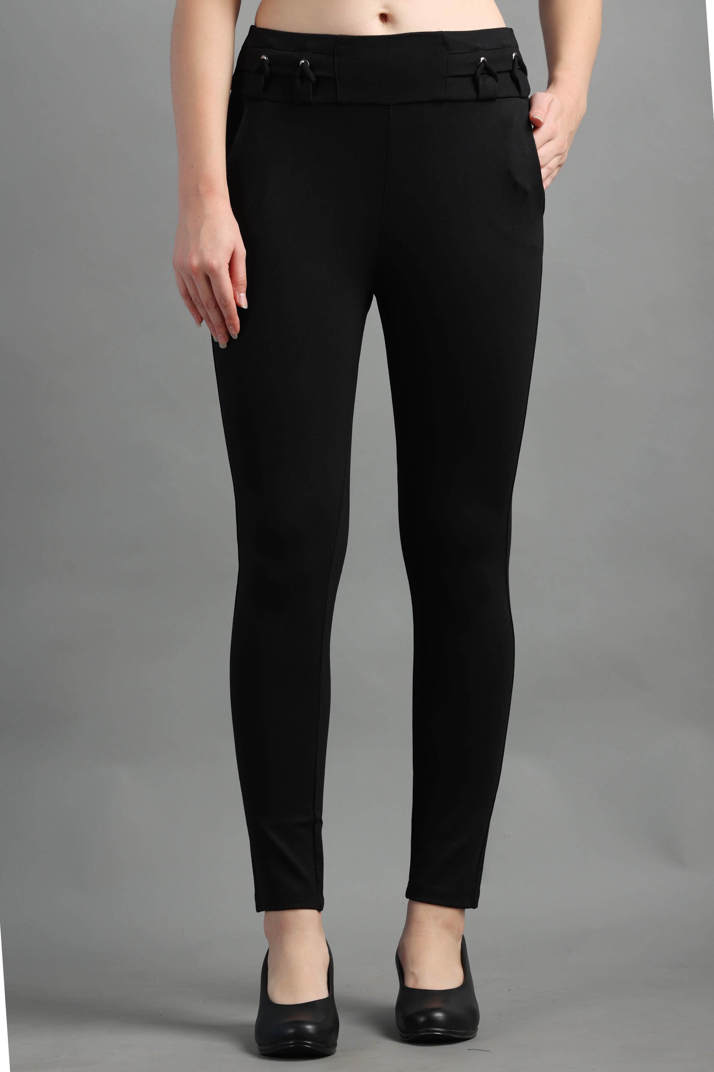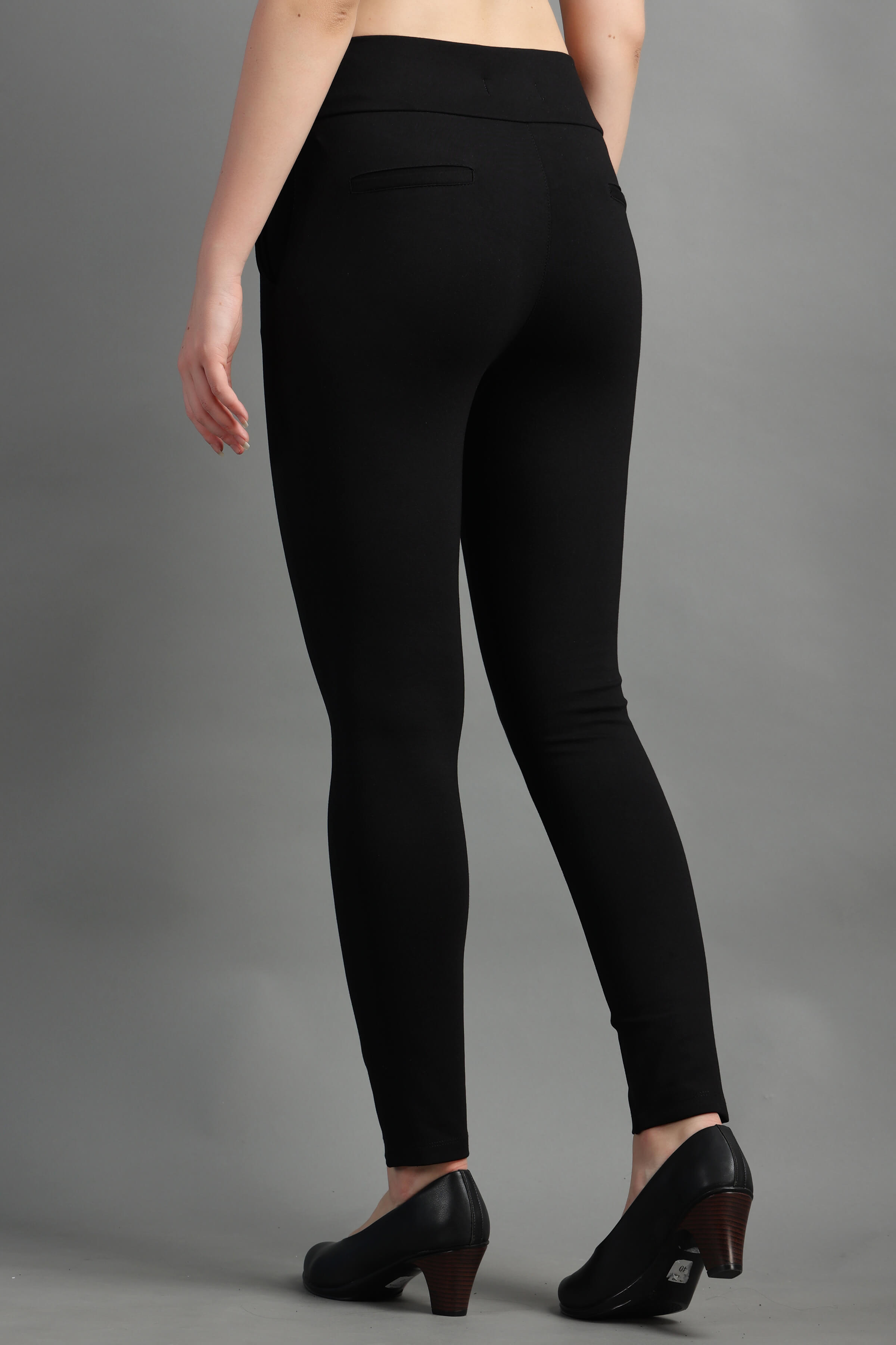 Black Stylish and well-fitted Jegging with, Breathable and Premium smooth fabric for all-day comfort, has an elasticated waistband for extra comfort and two front pockets, All styling accessories ( elastic, zipper, and buttons) used on the garment are of the best quality.